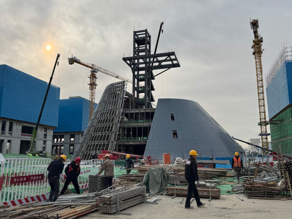 r2月中,记者来到施工现场,焊枪的火花与塔吊的转动交织,700余名工人多工种并行作业。在连片的建筑中,一座宛如发射塔形状的建筑格外引人注意。